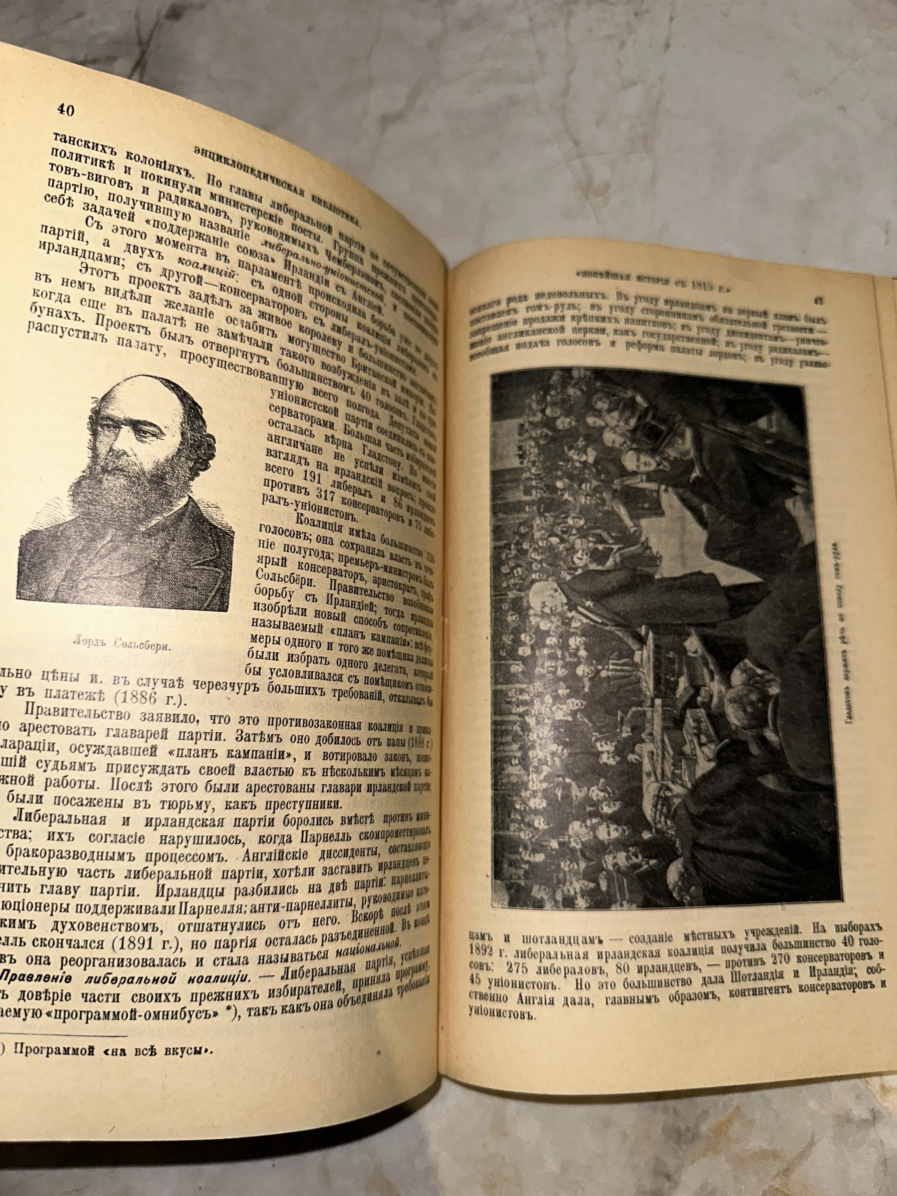 Уникальный образец дореволюционного книгопечатания, сохранивший дух интеллектуальной эпохи конца XIX века. Страницы украшены выразительным портретом лорда Солсбери и детальной гравюрой, а благородная патина времени на бумаге подчеркивает коллекционную ценность издания. Текст, набранный старой орфографией, погружает в атмосферу большой политики и истории минувших столетий.