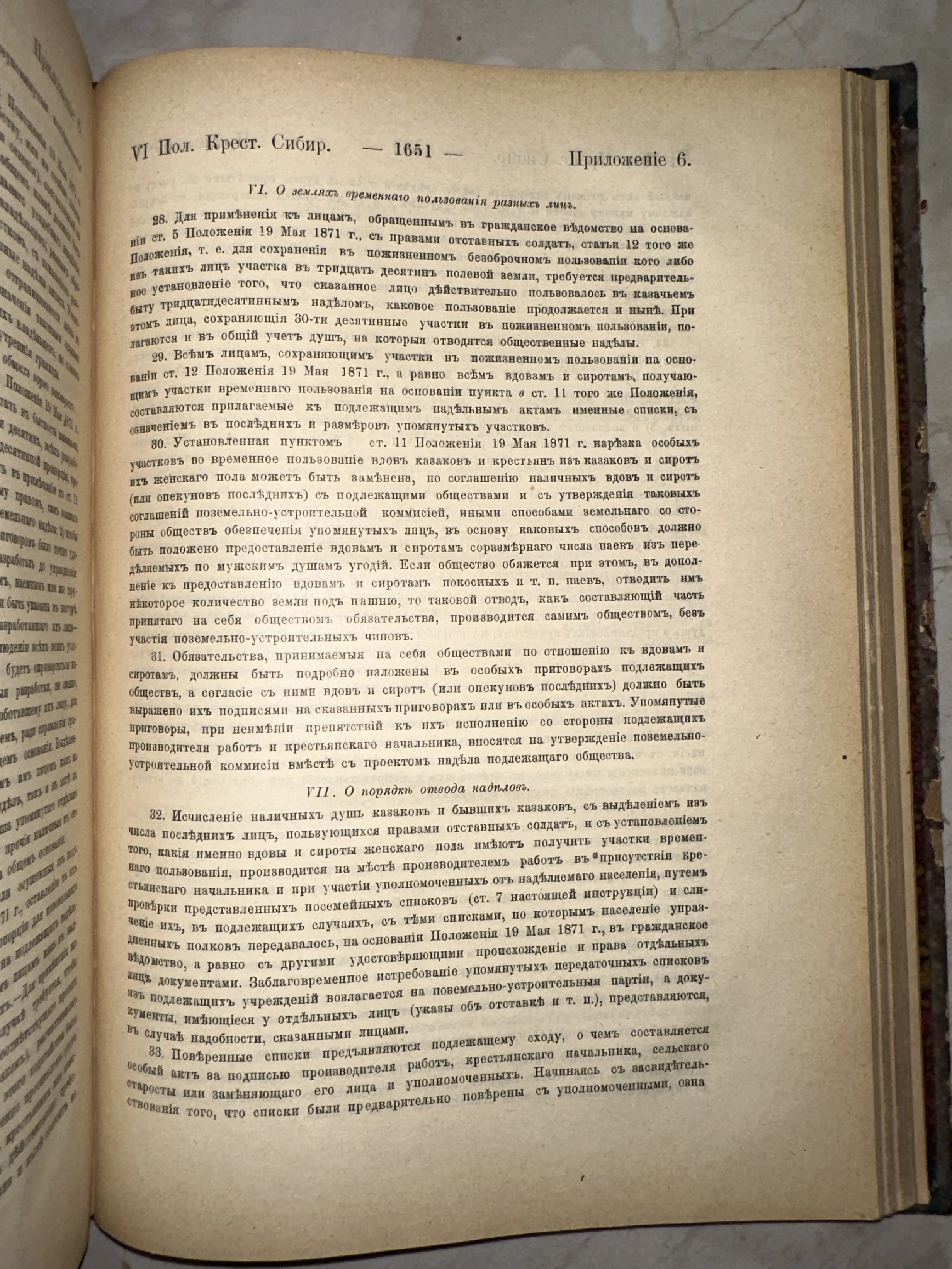 Уникальный документ эпохи, детально описывающий правовые аспекты землепользования и наделов в Сибирском крае. Пожелтевшие страницы с четким типографским шрифтом XIX века сохранили дух административной истории Российской империи. Этот экземпляр станет ценным приобретением для коллекционеров юридической литературы и исследователей истории Сибири.