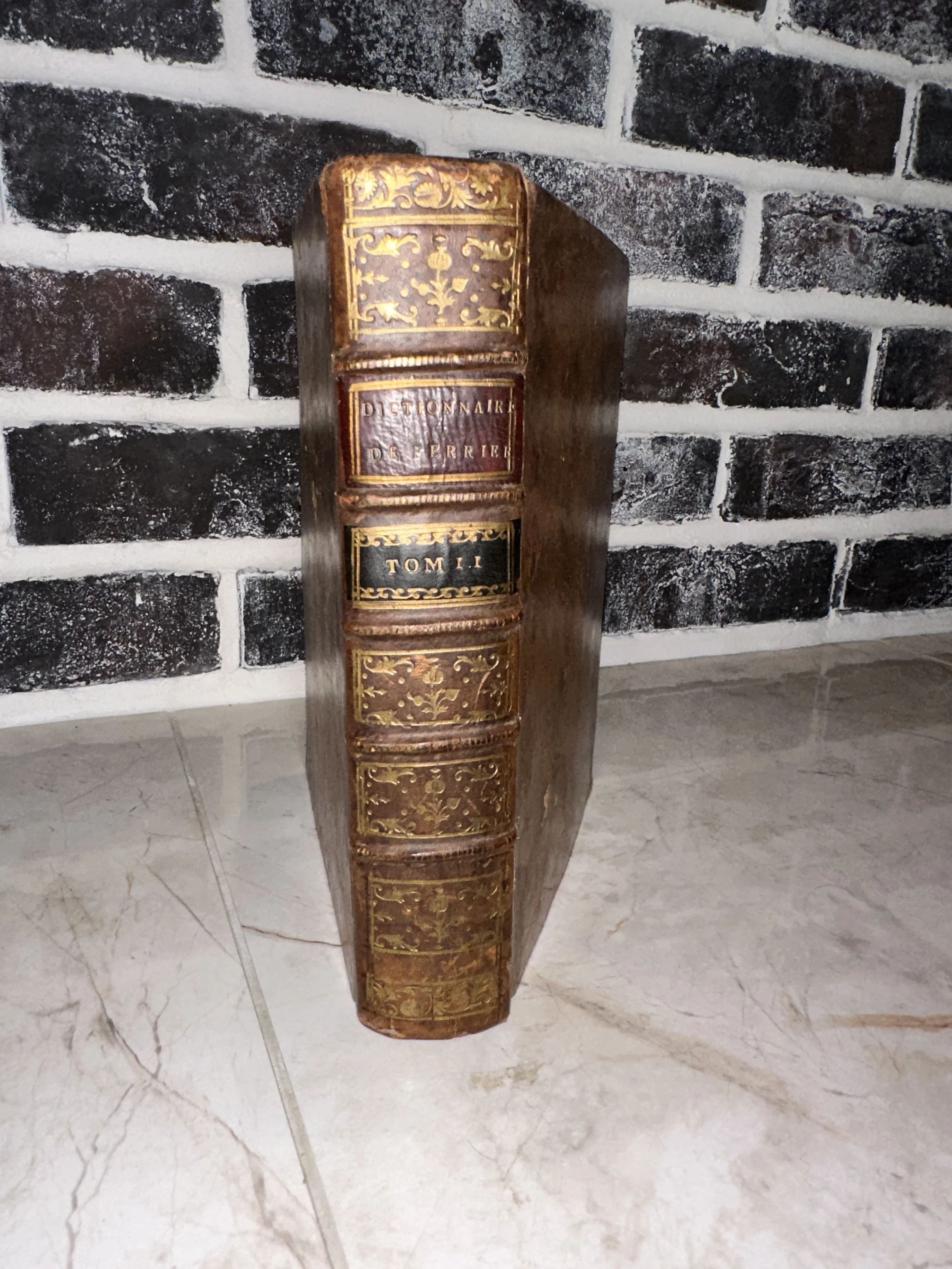 Старинный французский словарь Феррье в кожаном переплете