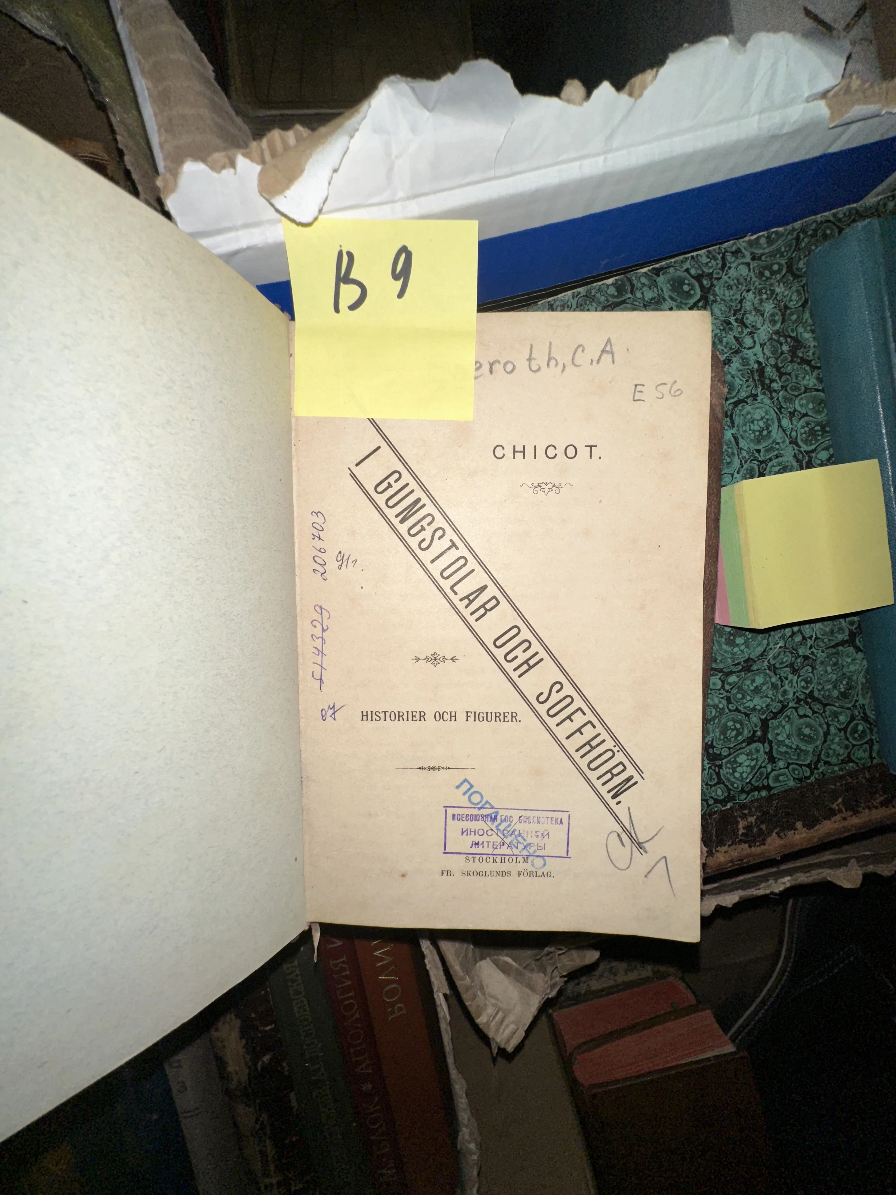 Этот редкий экземпляр шведской прозы хранит на своих страницах живую историю: оттиск печати Библиотеки иностранной литературы и аккуратные архивные пометки. Пожелтевшая от времени бумага и характерная типографика начала XX века создают неповторимую атмосферу подлинного книжного артефакта.