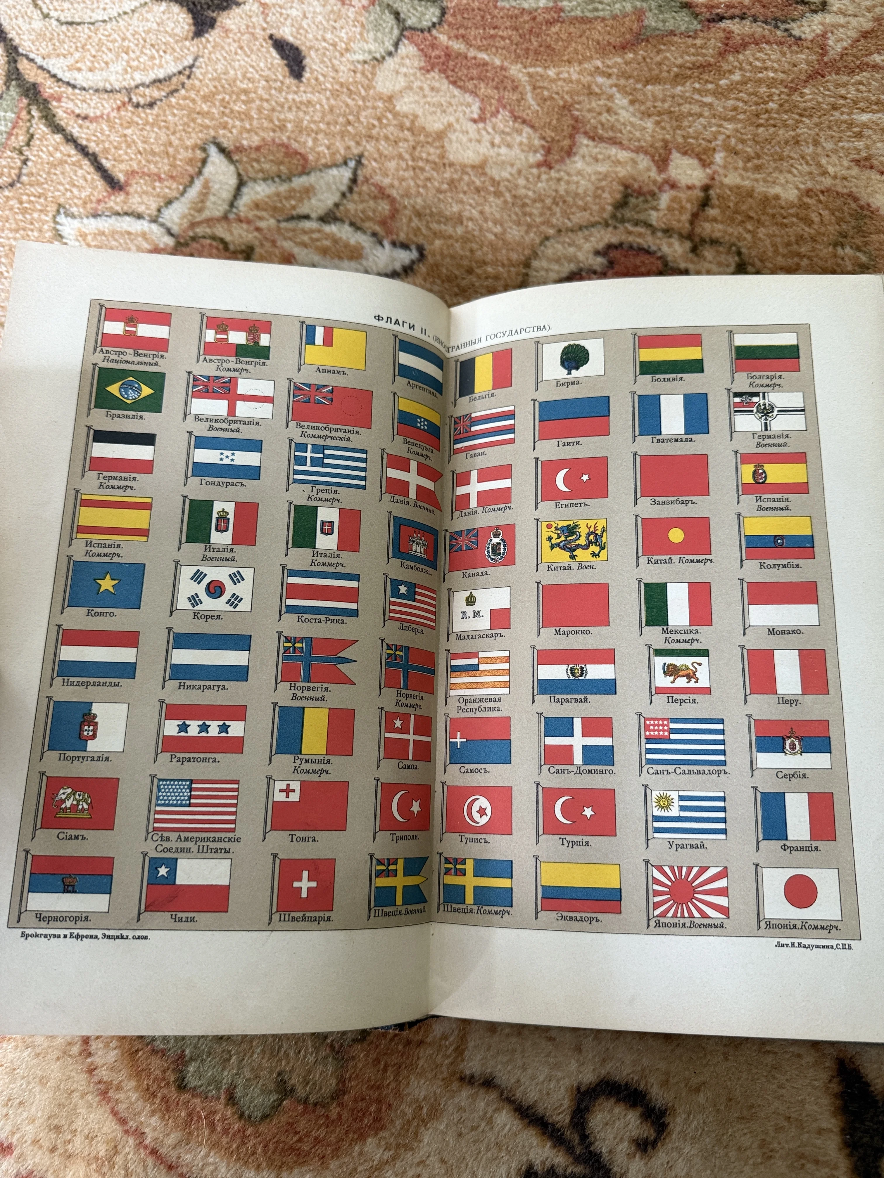 Флаги иностранных государств: литография из словаря Брокгауза и Ефрона