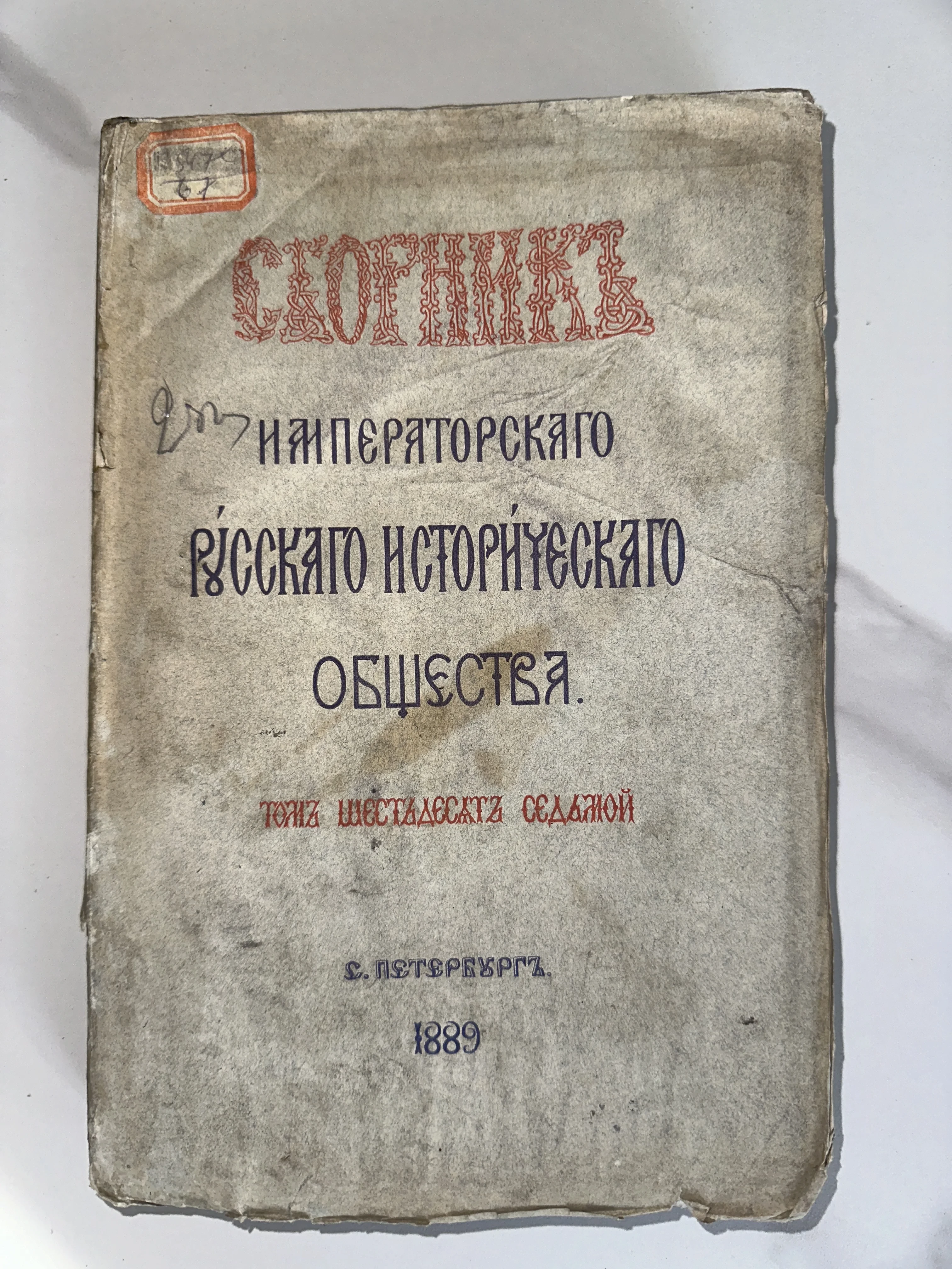 Сборник Императорского Русского исторического общества, 1889 год