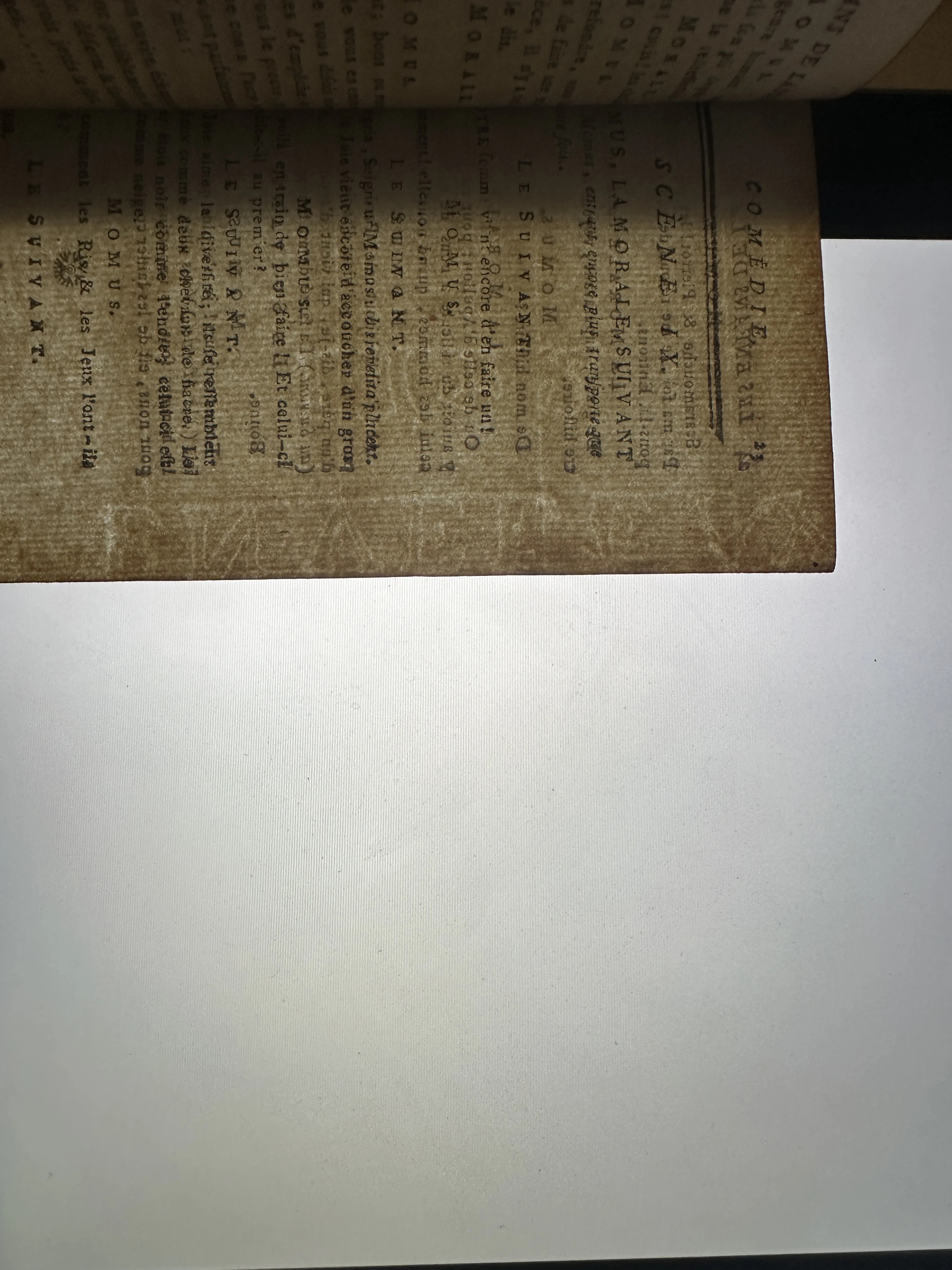 Перед вами подлинный фрагмент европейской драматургии, запечатленный на пожелтевшей от времени бумаге. Уникальный шрифт и характерная верстка XVIII-XIX веков передают дух классического театрального искусства. Состояние листа с благородной патиной и легкой прозрачностью бумаги подчеркивает почтенный возраст и антикварную ценность этого экземпляра.