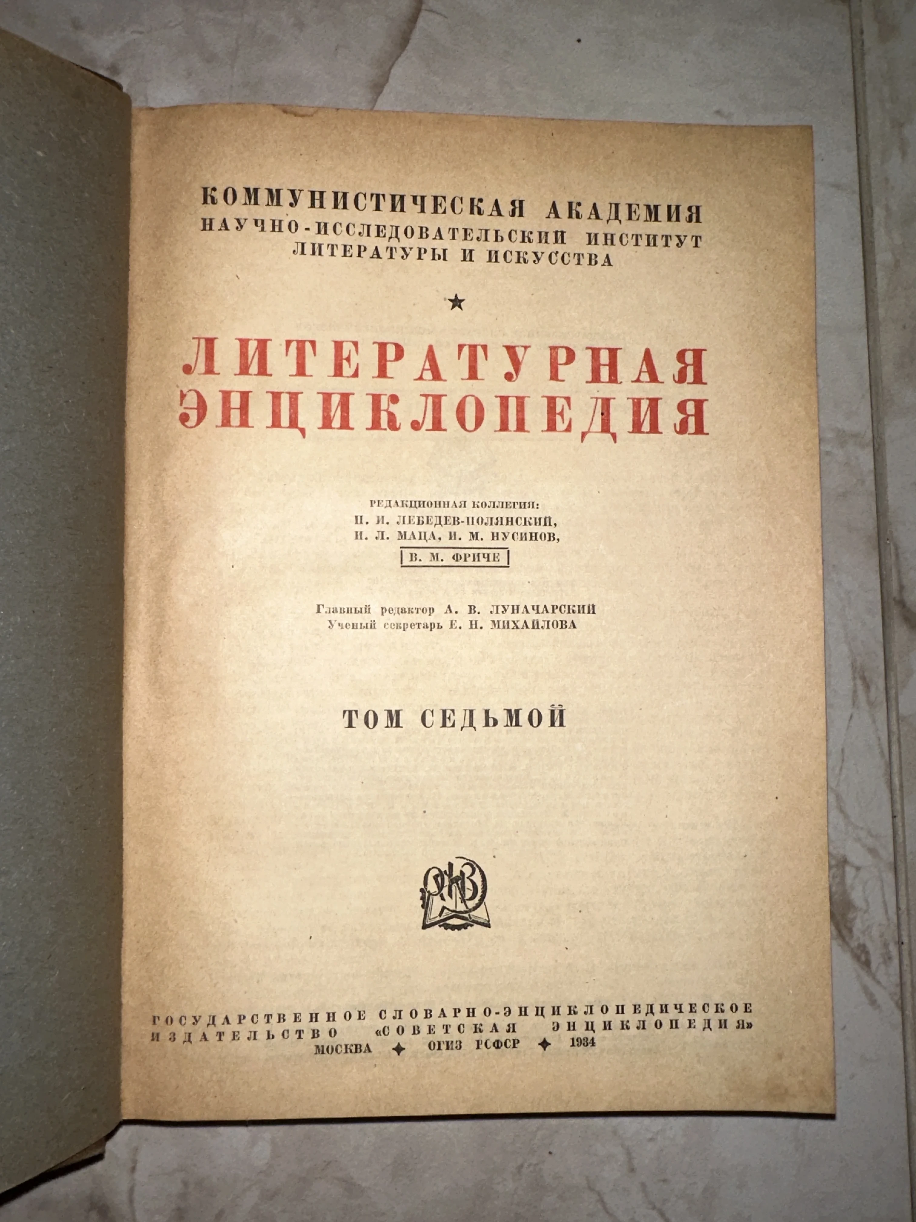 Литературная энциклопедия. Том седьмой, 1934 год