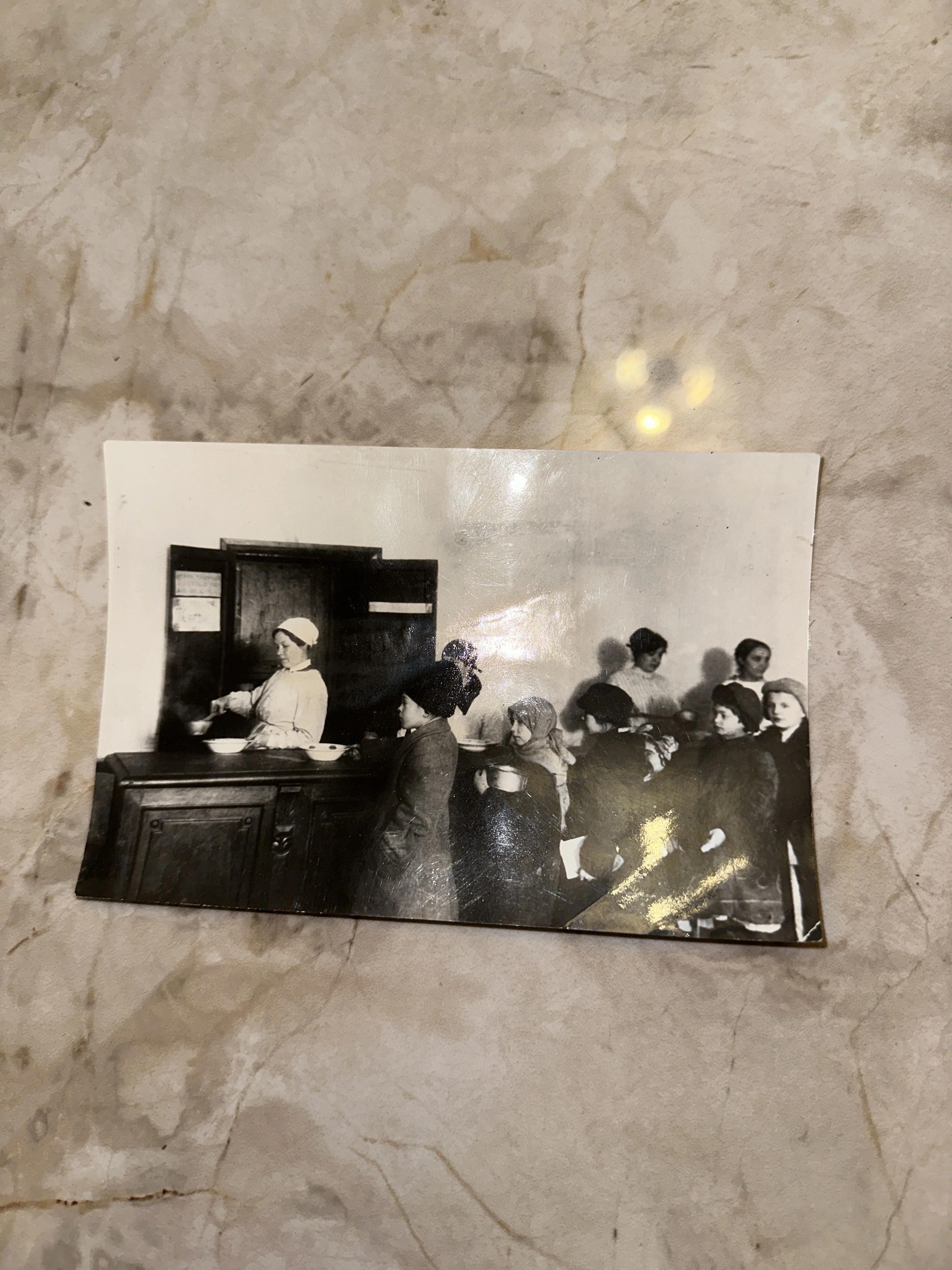 Редкий документальный кадр, передающий атмосферу и быт начала прошлого столетия. Сцена в общественной столовой наполнена живыми эмоциями детей, а естественная патина времени на снимке подчеркивает его коллекционную ценность и подлинность. Этот экземпляр станет важным дополнением к архиву, посвященному истории социальной жизни и повседневности.