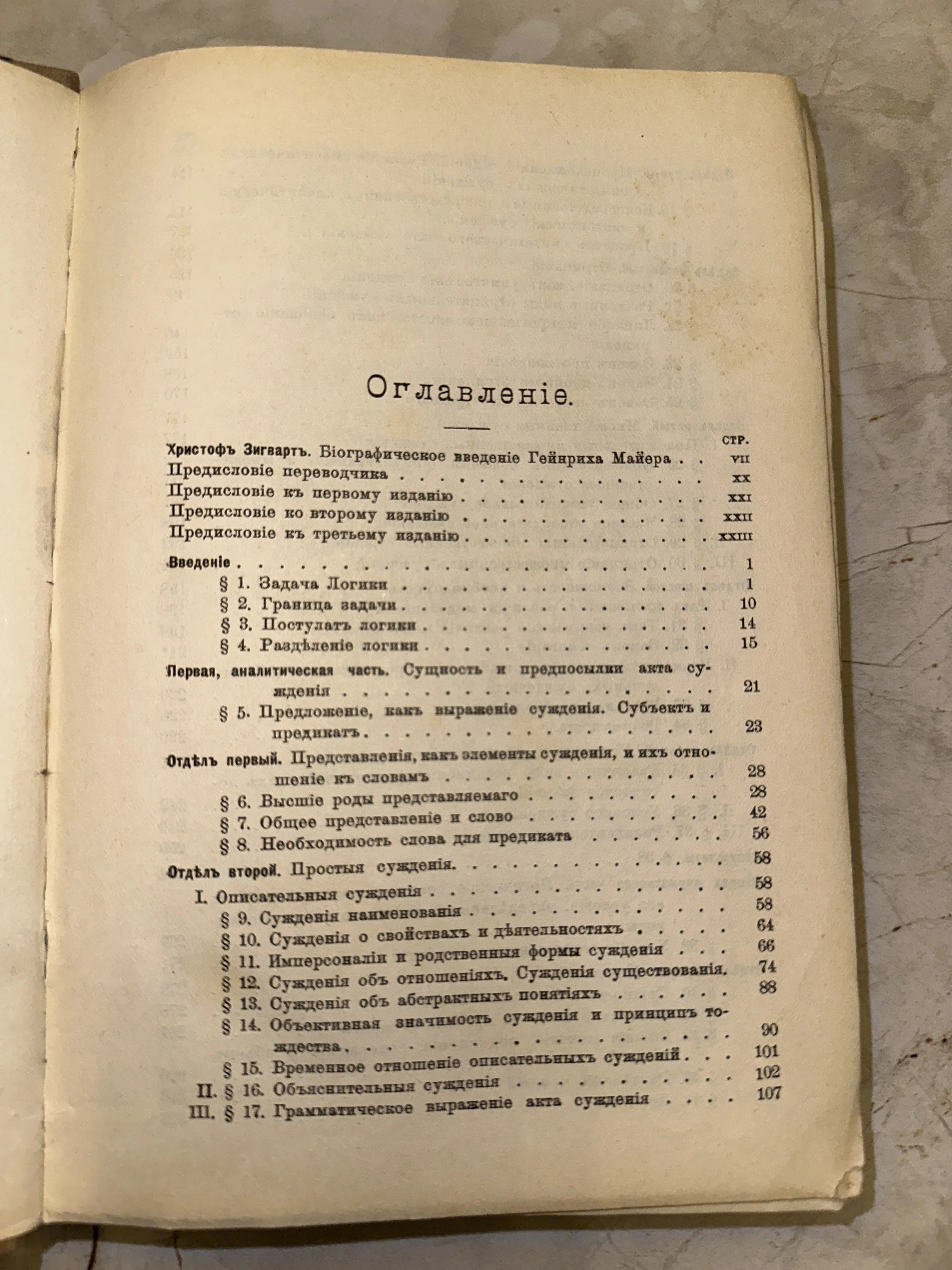 Оглавление антикварного издания «Логика» Христофа Зигварта