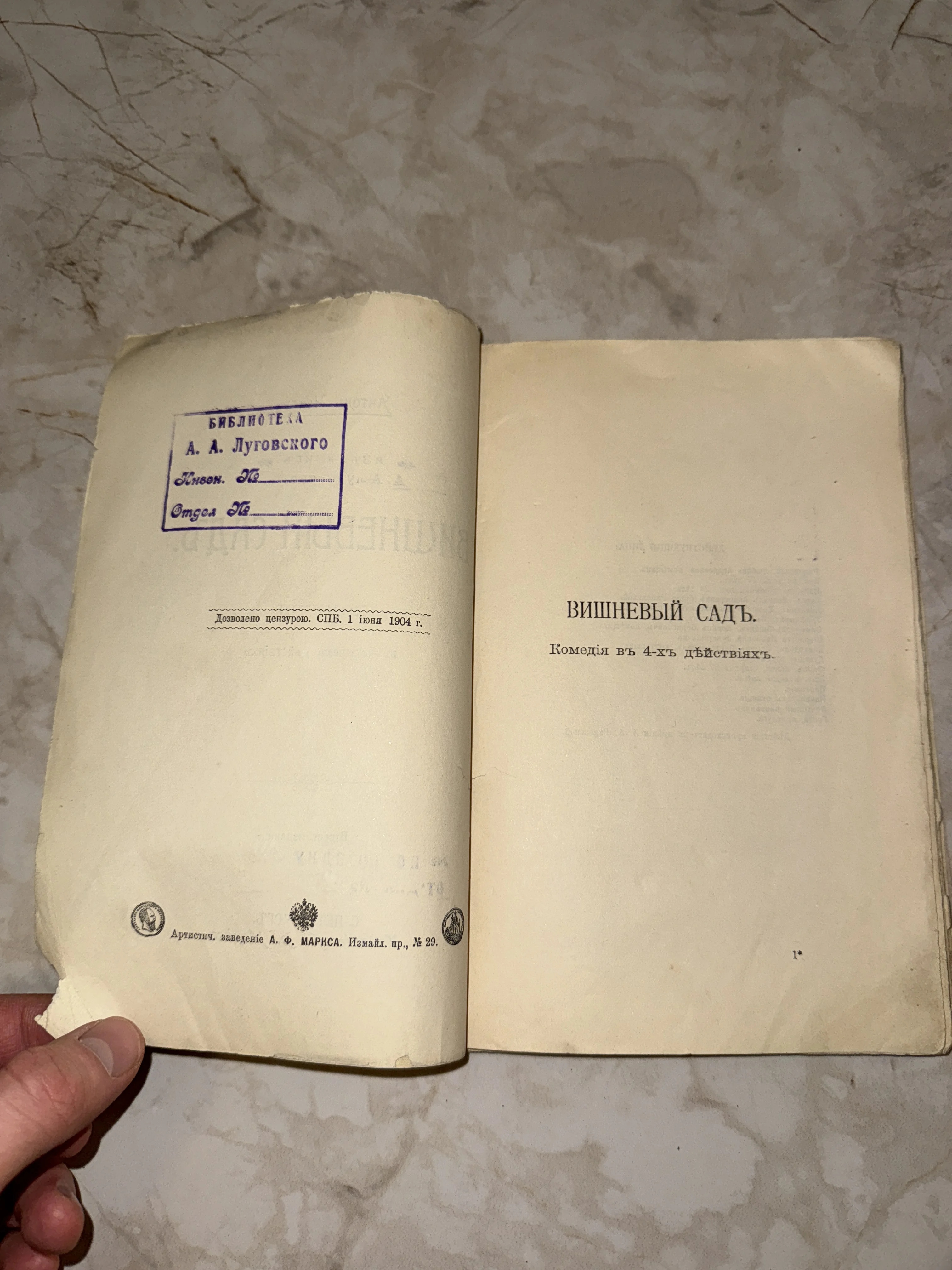 А. П. Чехов «Вишневый сад», издание А. Ф. Маркса 1904 года