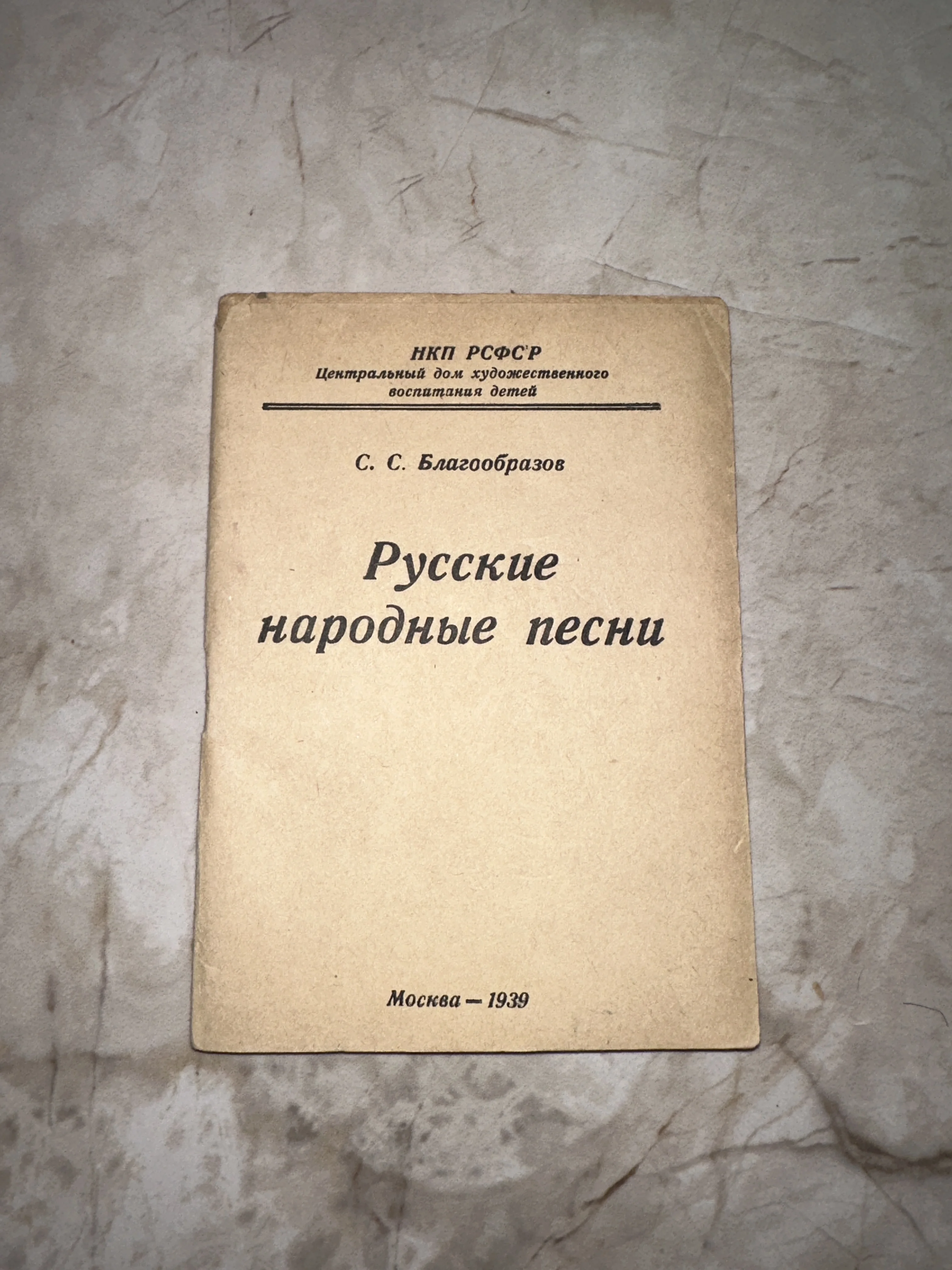 Подлинное предвоенное издание, выпущенное Центральным домом художественного воспитания детей при НКП РСФСР. Книга представляет собой ценный образец советской педагогической литературы, сохранивший дух эпохи в лаконичной типографике и благородной патине времени на бумаге. Идеальный экземпляр для коллекционеров музыкального фольклора и истории советского образования.
