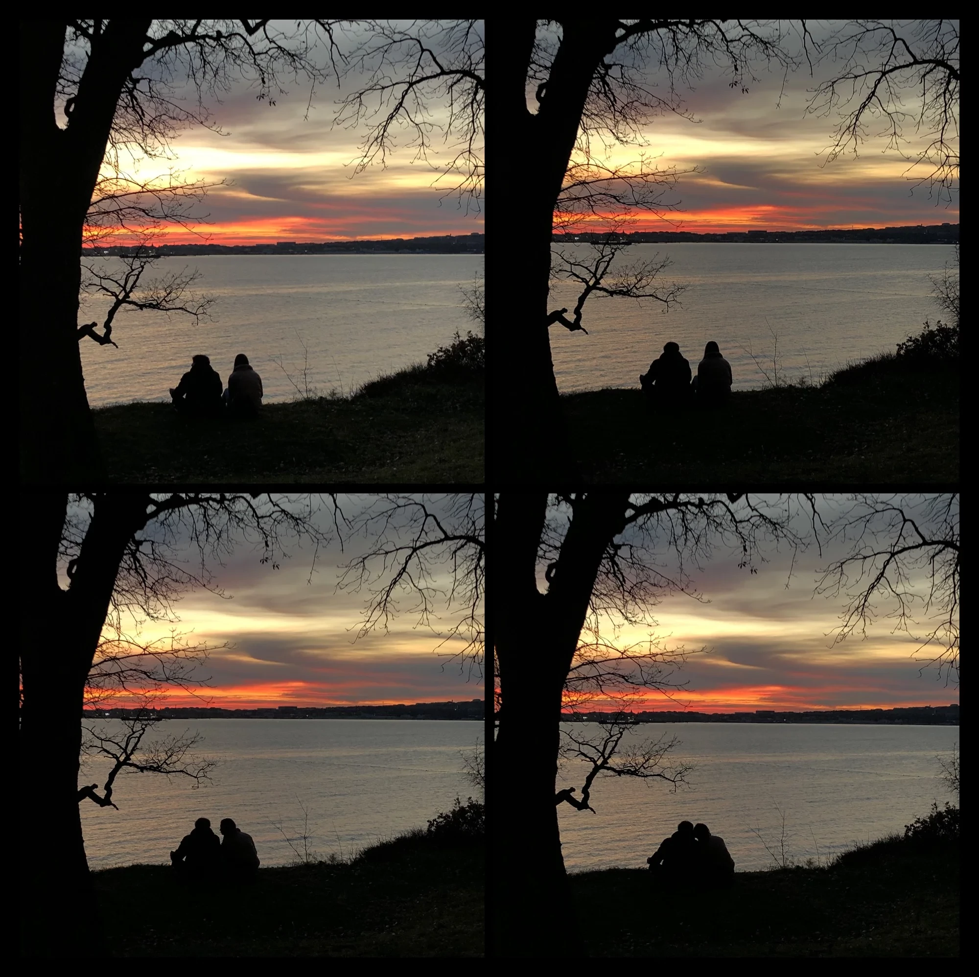 Эта серия снимков наполнена меланхоличной красотой уходящего дня, где пламенеющий горизонт встречается с бескрайней гладью воды. Контрастные силуэты на переднем плане подчеркивают масштаб природы и создают интимную атмосферу созерцания. Работа идеально передает дух спокойствия и романтизма, характерный для классической пейзажной фотографии.