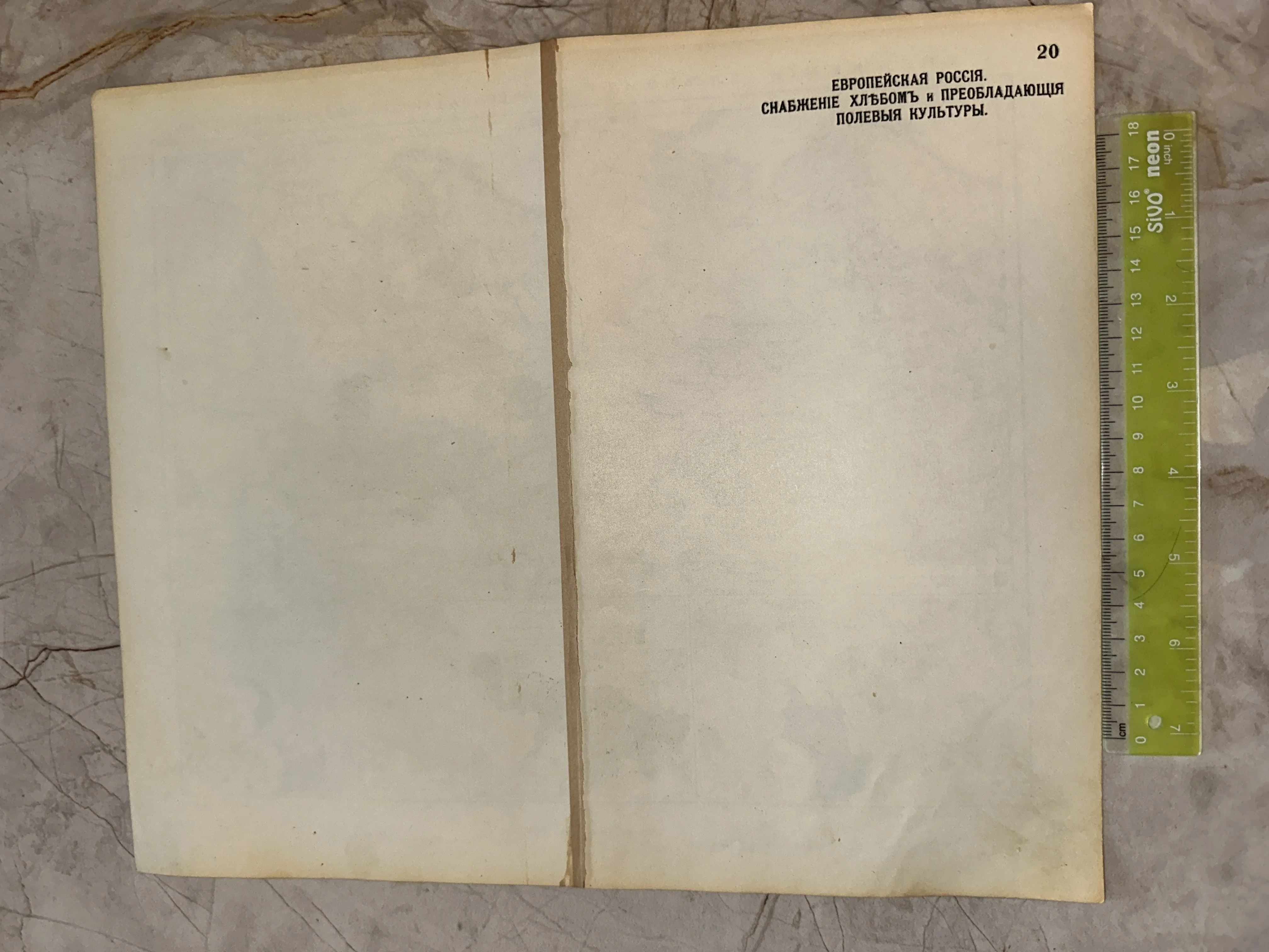 Обратная сторона старинного печатного листа с заголовком о сельском хозяйстве Европейской России и измерительной линейкой рядом.