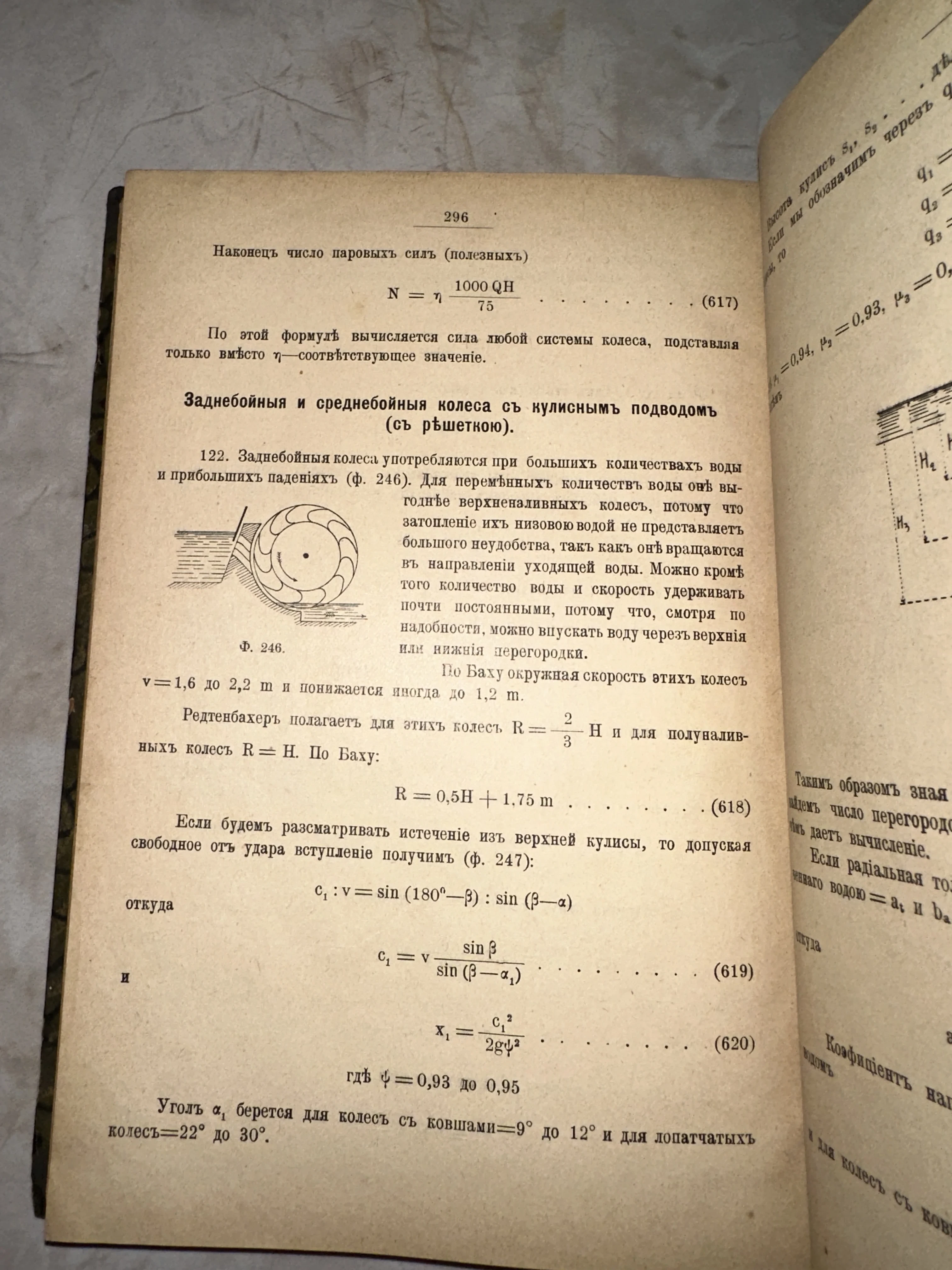 Эта уникальная страница из дореволюционного пособия по механике переносит в эпоху расцвета инженерной мысли. Пожелтевшая от времени бумага с четким шрифтом и детализированным чертежом водяного колеса сохранила подлинный дух научного поиска прошлых столетий. Прекрасный образец технической литературы, который станет ценным дополнением коллекции или изысканным элементом декора для интерьера в стиле лофт.