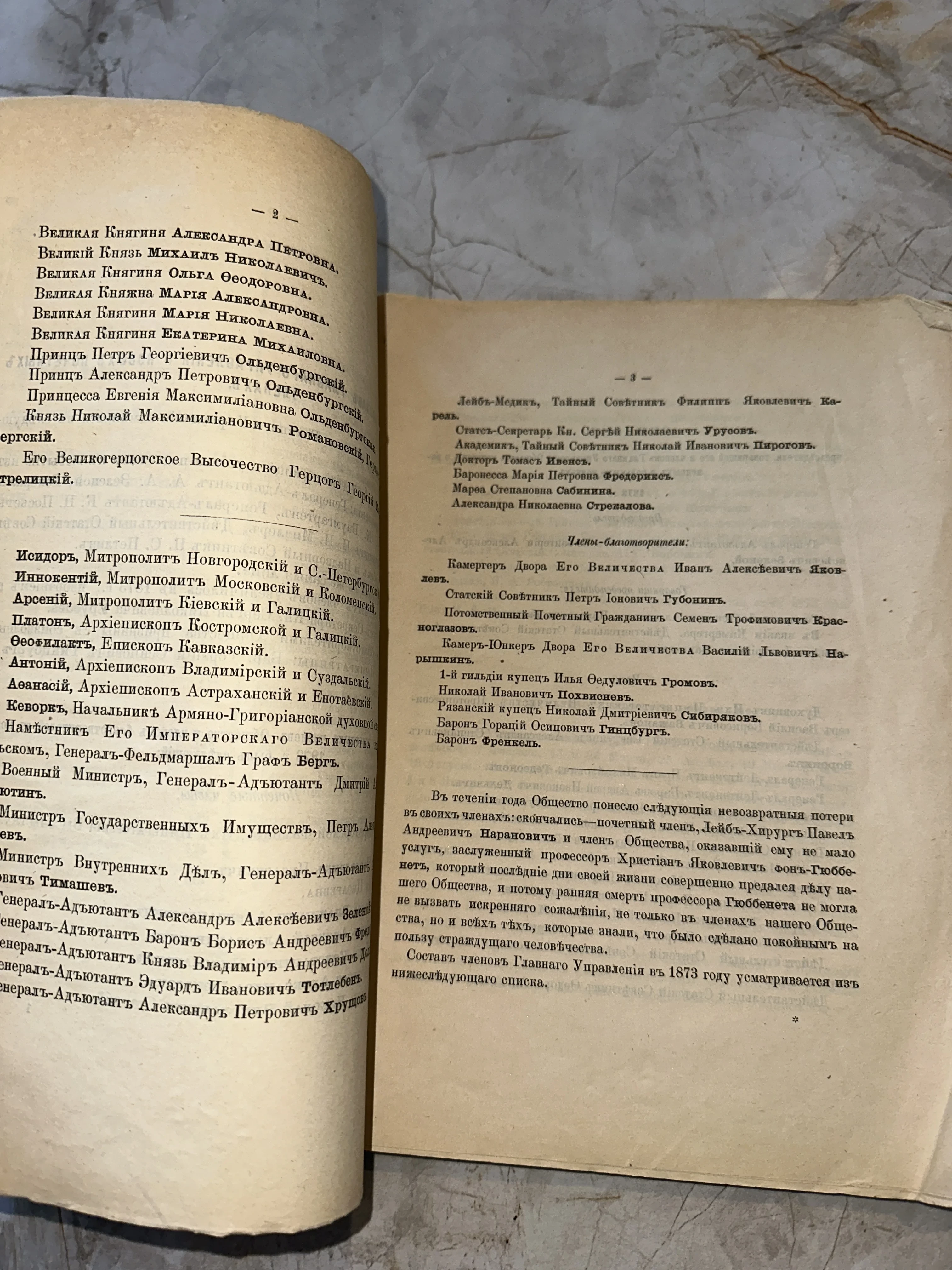 Страницы со списком почетных членов благотворительного общества, 1873 год