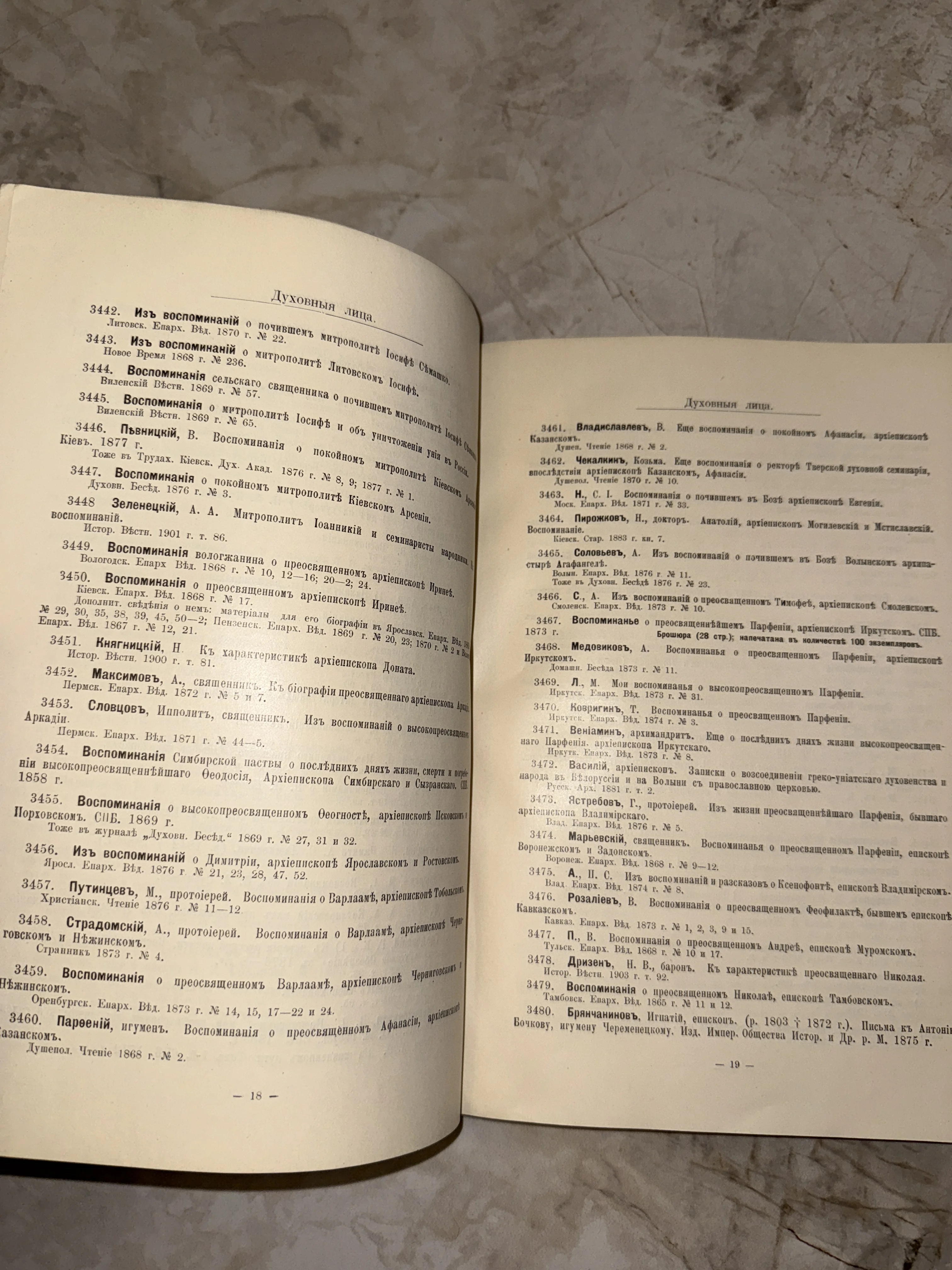 Библиографический указатель «Духовныя лица»