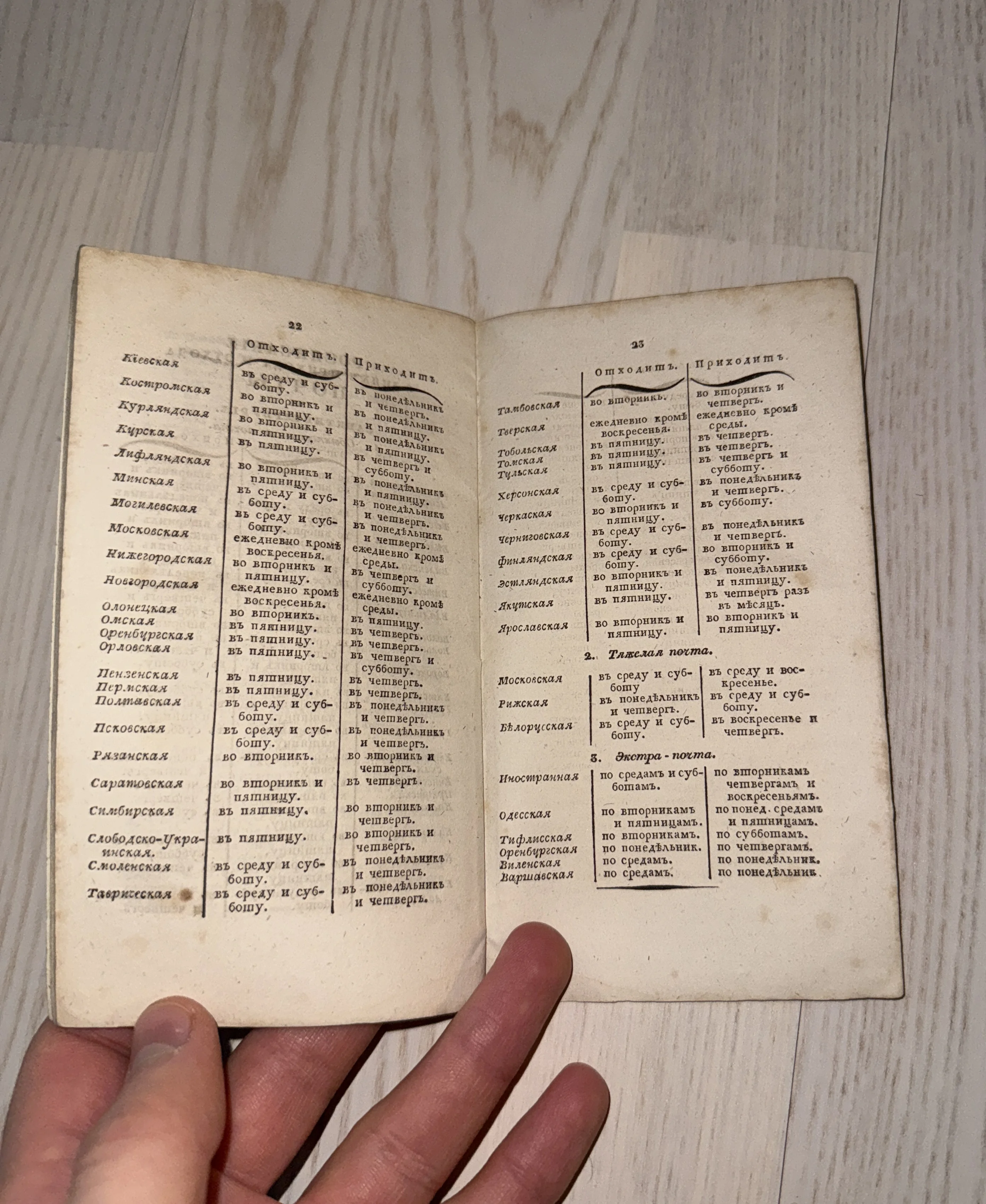 Расписание почтовых отправлений Российской империи XIX века