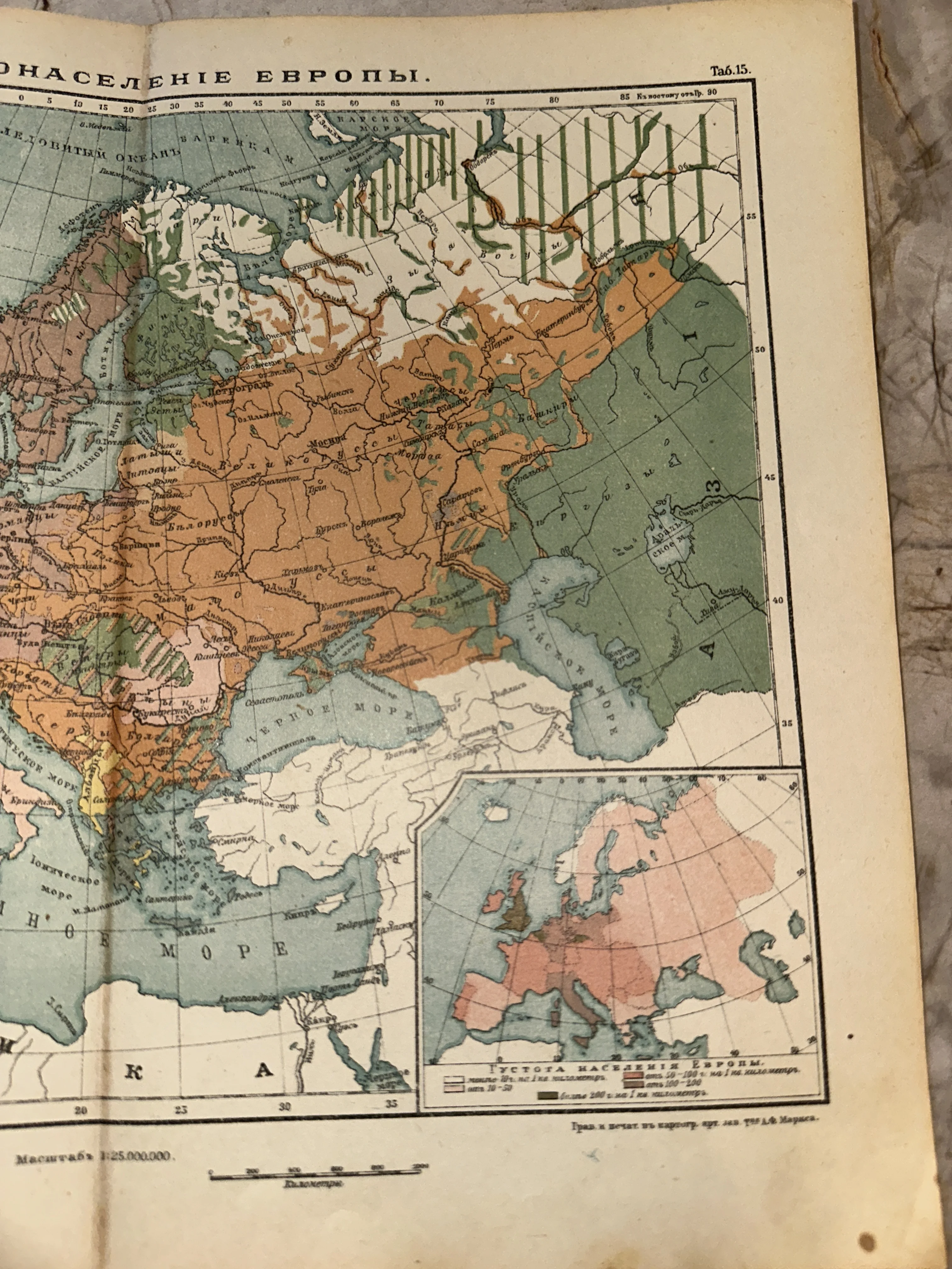 Антикварная карта «Население Европы», начало XX века
