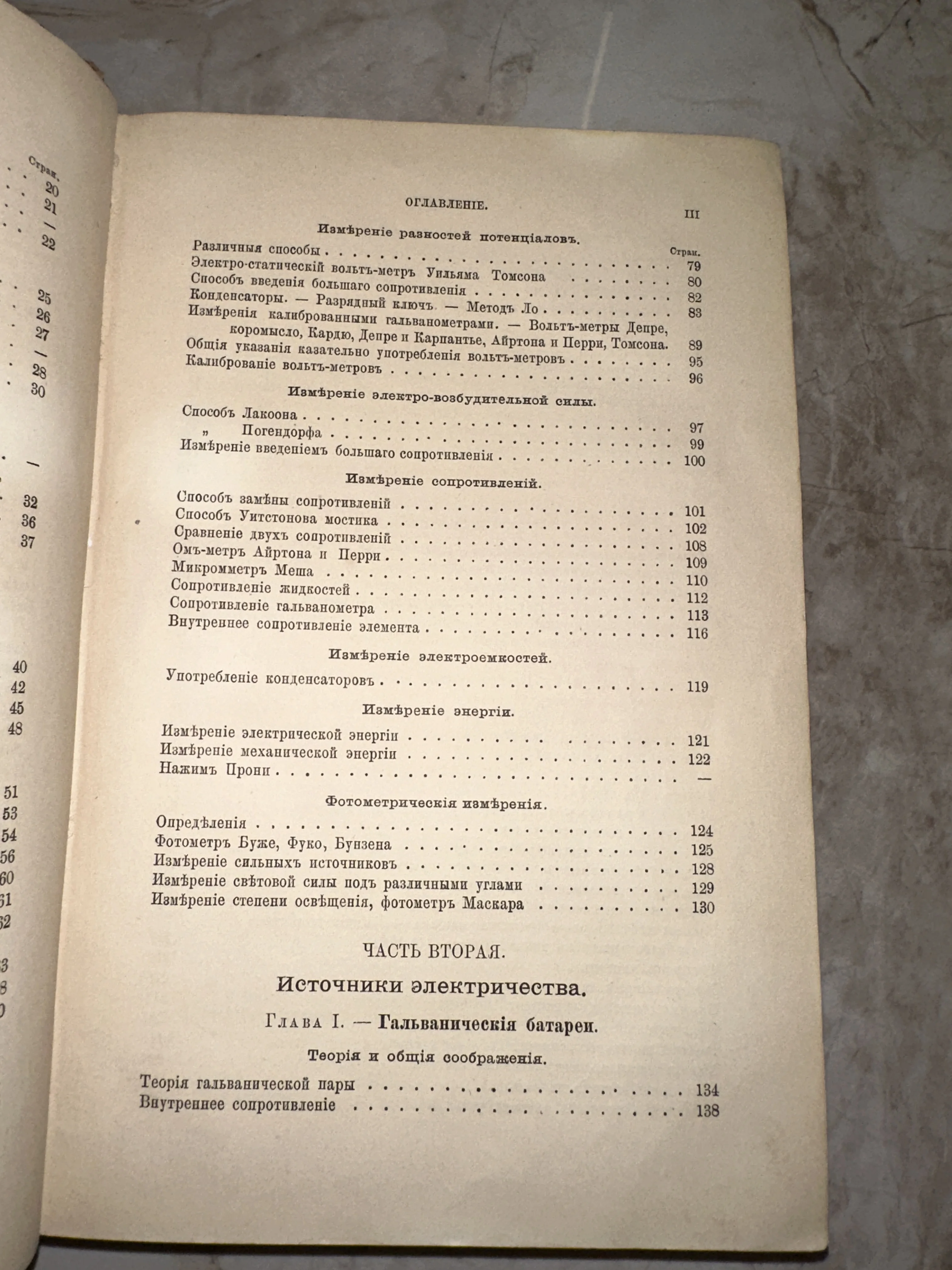 Оглавление антикварного научного издания по электротехнике