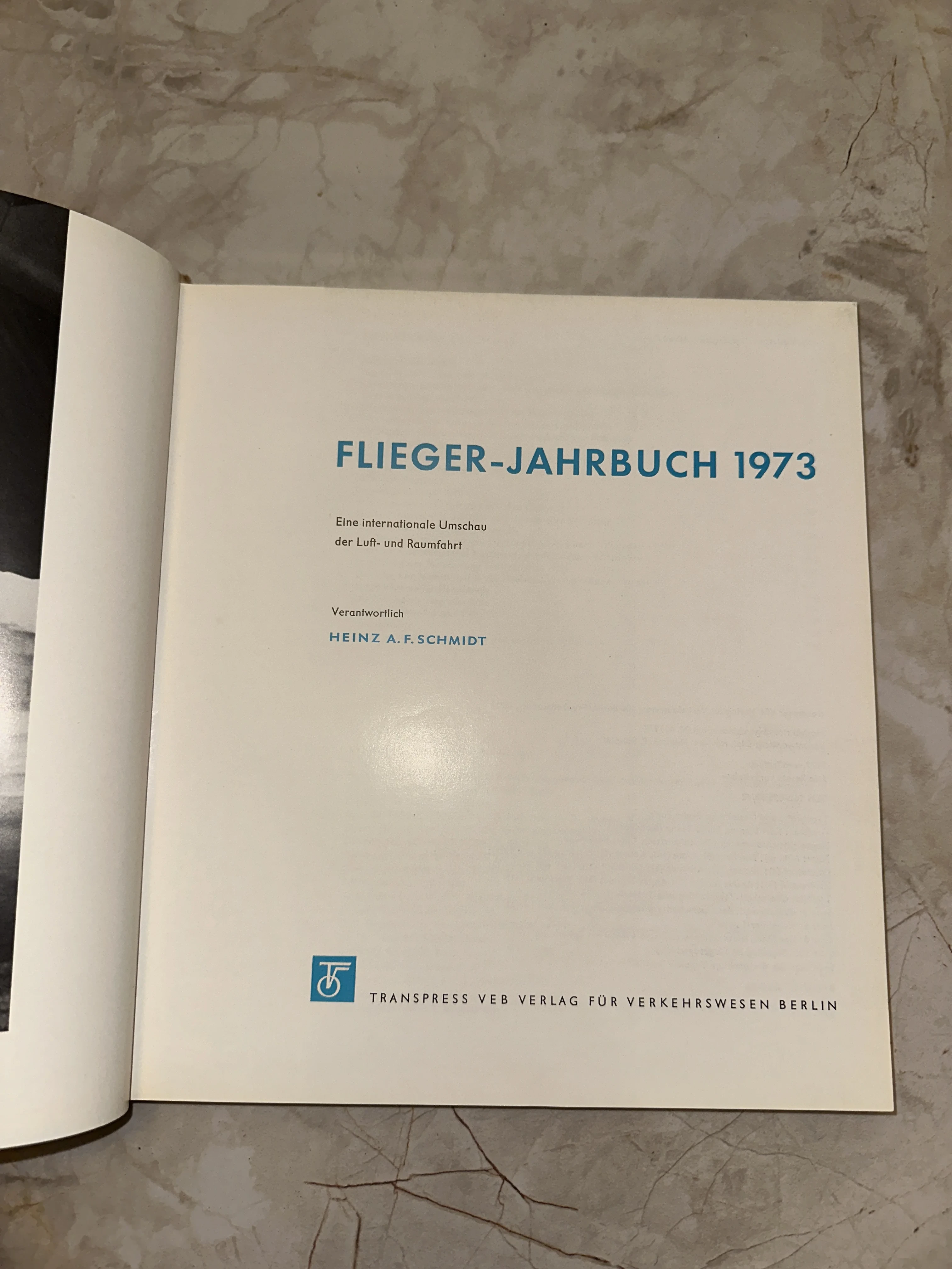 Титульный лист немецкого издания Flieger-Jahrbuch 1973 о достижениях авиации и космонавтики.