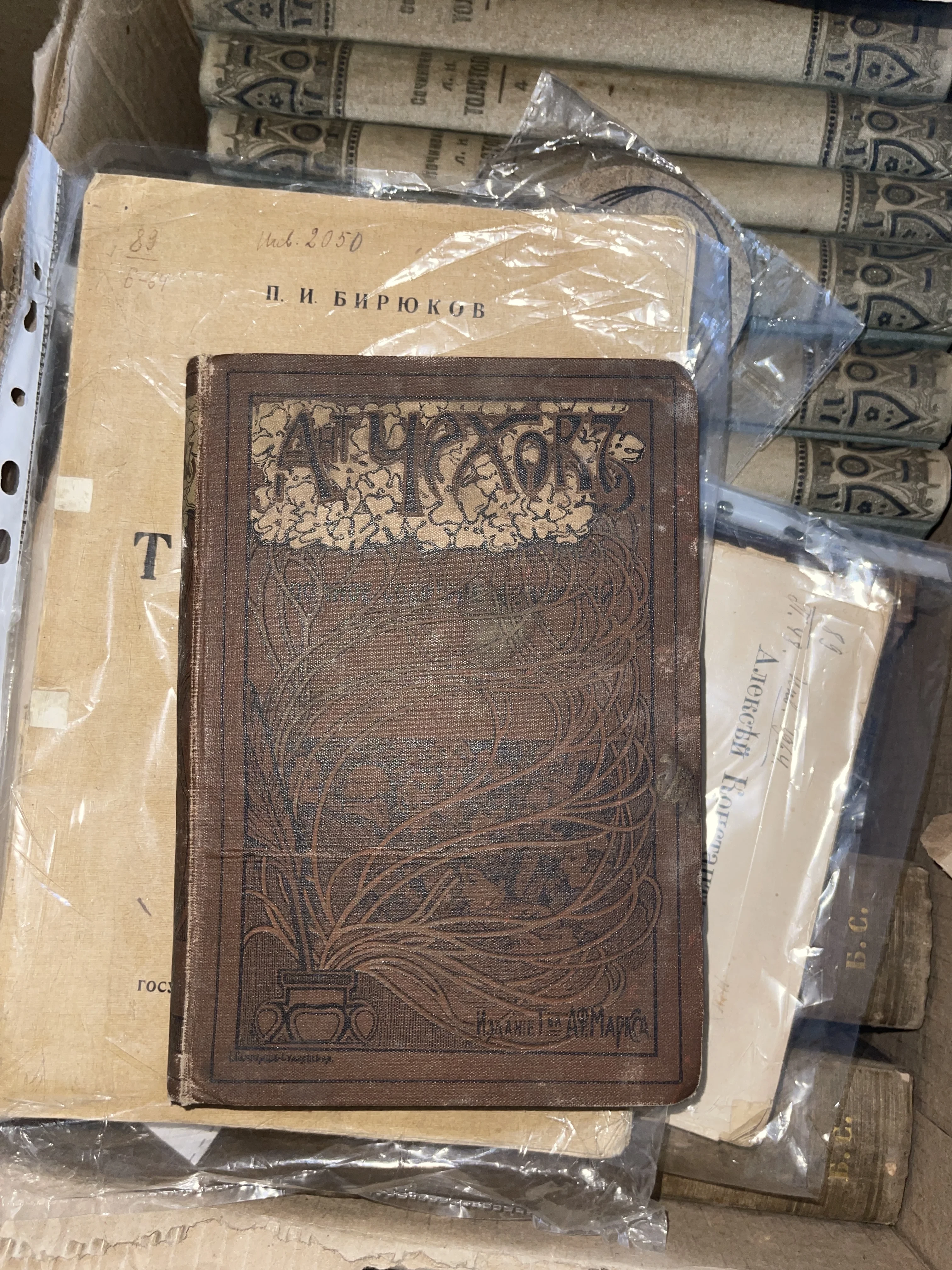 Перед вами редкий экземпляр чеховской классики в аутентичном переплете начала XX века, украшенном изящным тиснением в духе ар-нуво. Книга сохранила очарование ушедшей эпохи и соседствует с ценными биографическими материалами П. И. Бирюкова, представляя огромный интерес для коллекционеров и библиофилов.