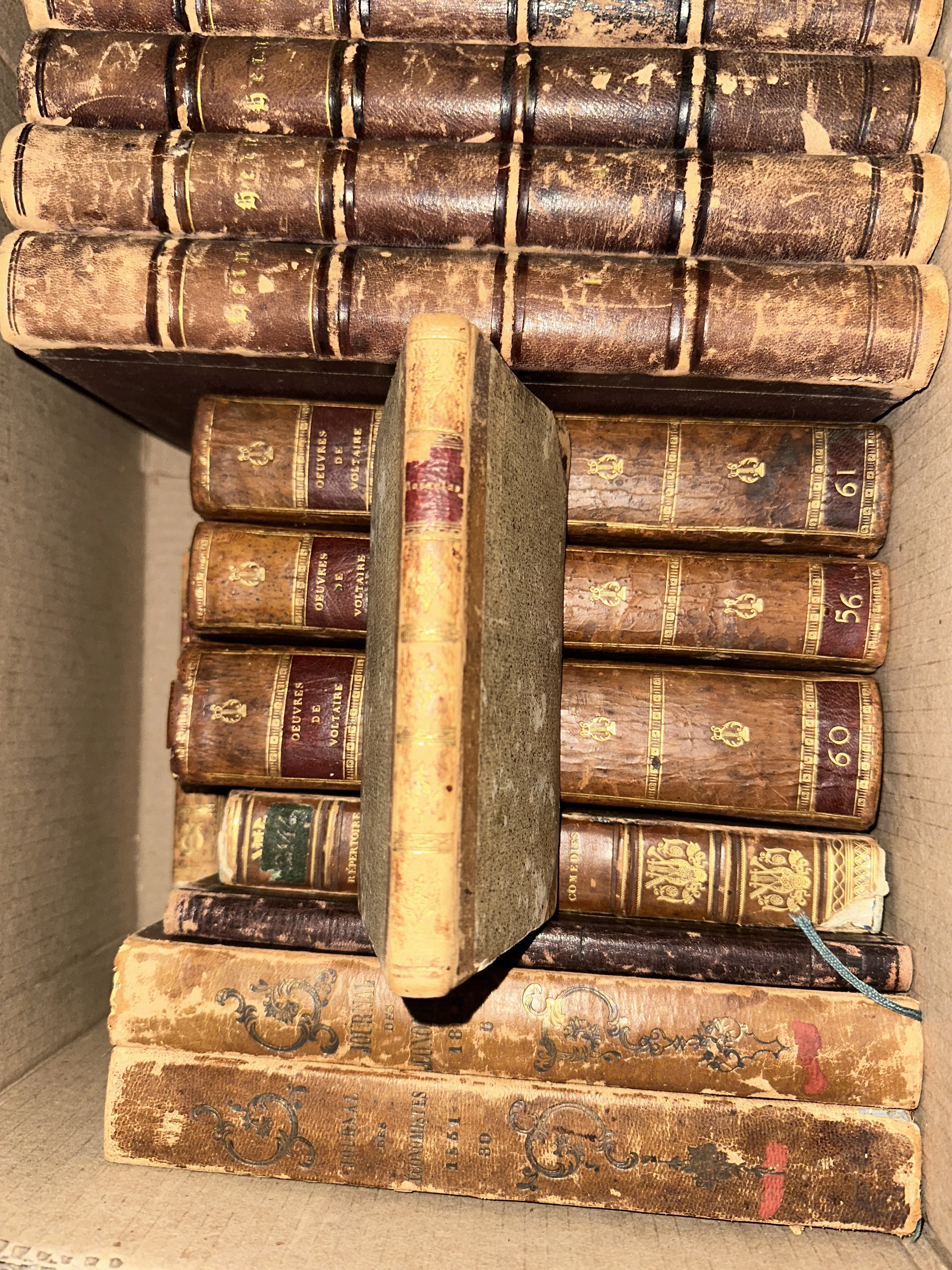 Изысканное собрание французских изданий XVIII-XIX веков, сохранившее дух классической эпохи в благородной патине кожаных переплетов. Золоченое тиснение на корешках, среди которых выделяются тома произведений Вольтера, свидетельствует о высоком качестве типографского искусства прошлого. Эти книги станут жемчужиной частной библиотеки и подчеркнут безупречный вкус их обладателя.