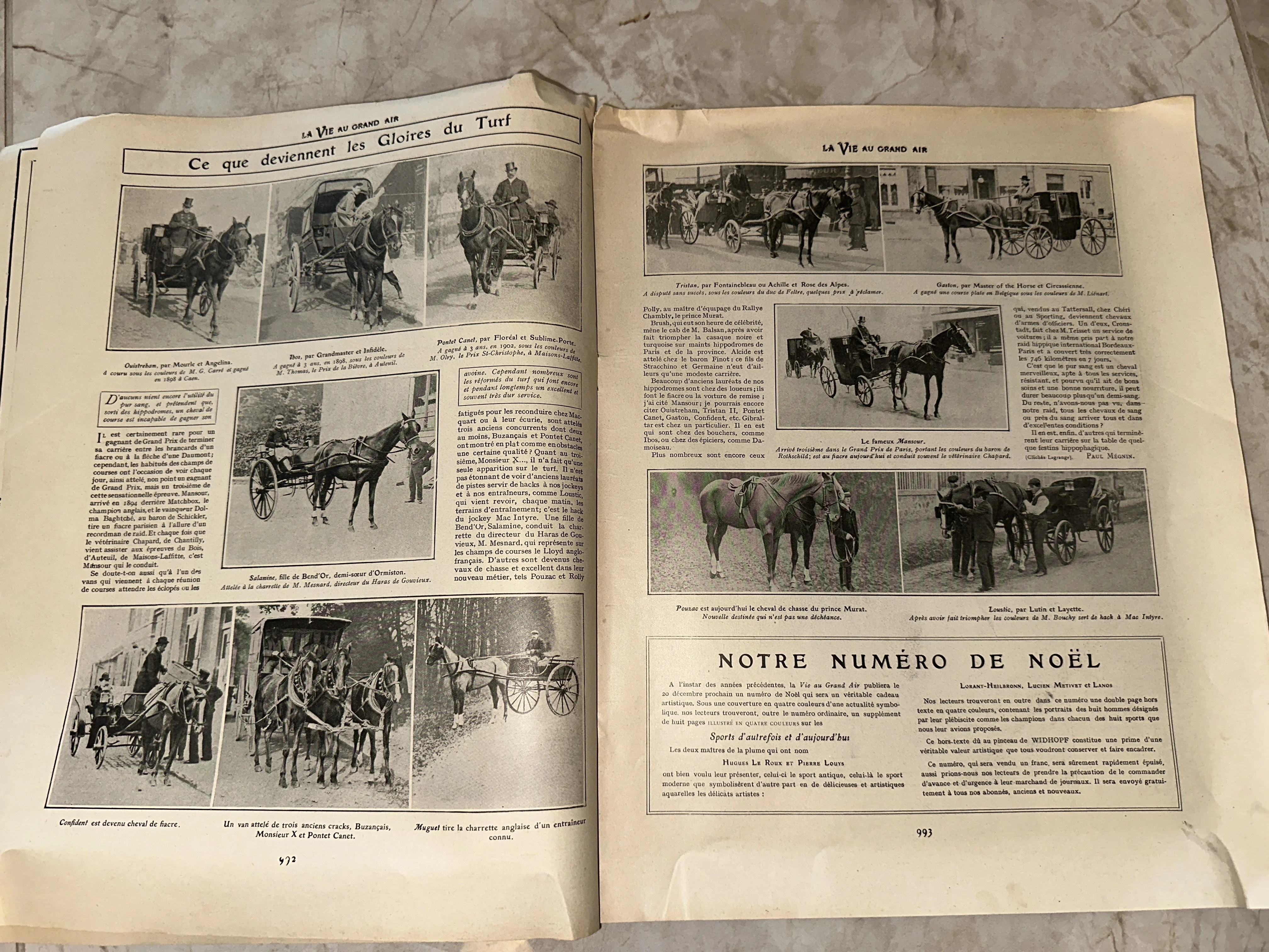Этот аутентичный разворот из иллюстрированного еженедельника La Vie au Grand Air переносит в атмосферу «Прекрасной эпохи», детально описывая мир конного спорта. На пожелтевших страницах сохранились редкие снимки породистых скакунов и изысканных упряжек, представляющие особую ценность для любителей иппологии. Превосходный экземпляр старинной периодики с характерной патиной времени, идеально подходящий для частной коллекции.