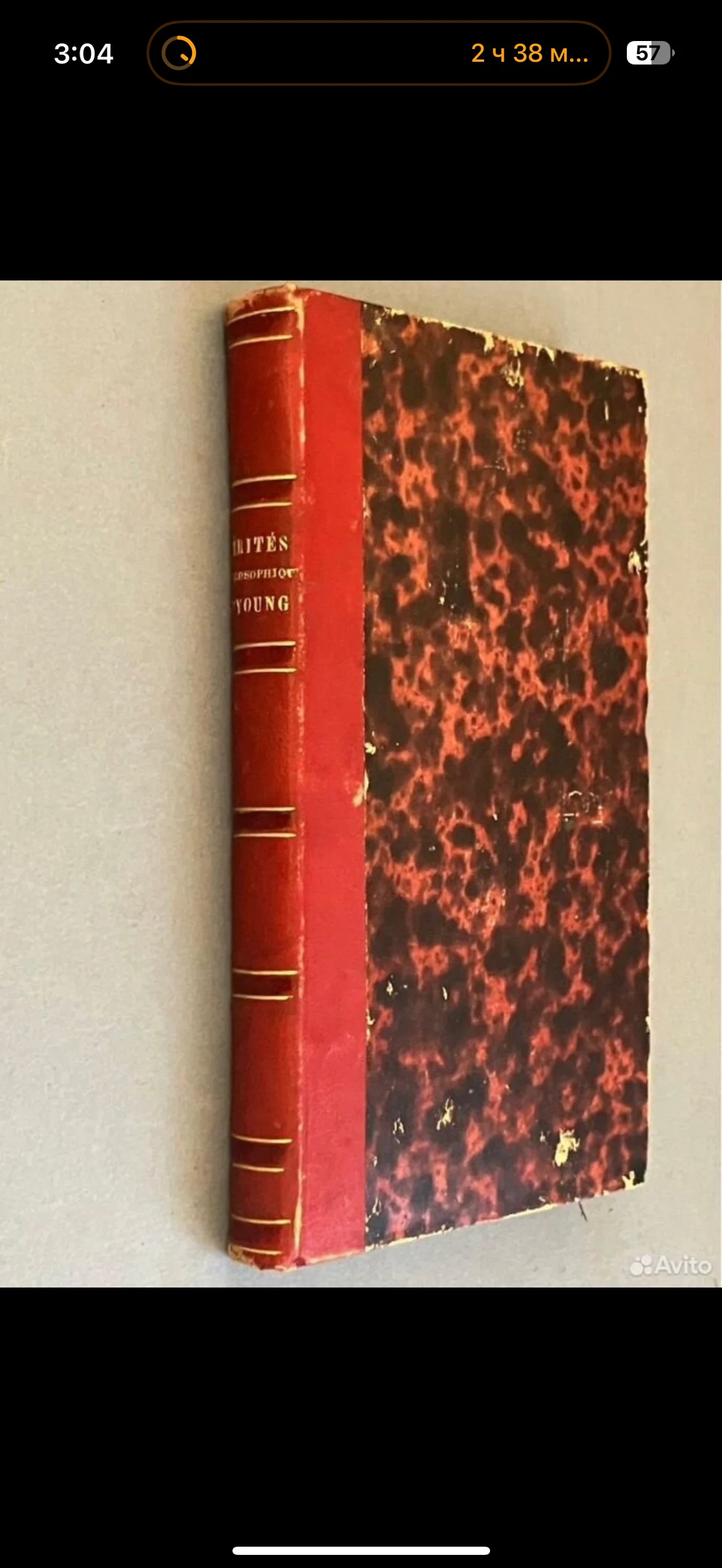 Изящный французский переплет XIX века с эффектной «мраморной» бумагой и тисненым золотом корешком. Благородная патина и следы времени на обложке подчеркивают подлинность этого коллекционного экземпляра, который станет украшением любой домашней библиотеки.